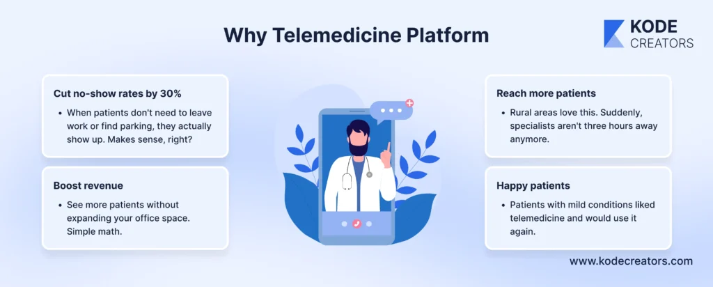 A telemedicine platform is basically a clinic going digital. Patients can video chat with doctors, book appointments, get prescriptions, and access their medical records all from their phone or computer. No more waiting rooms, no more driving across town for a 10-minute check-up.