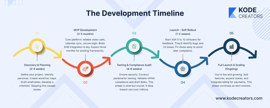 This phase never really ends. Healthcare tech evolves constantly. New regulations pop up. Competitors launch features you need to match. Plan on continuous updates and improvements.