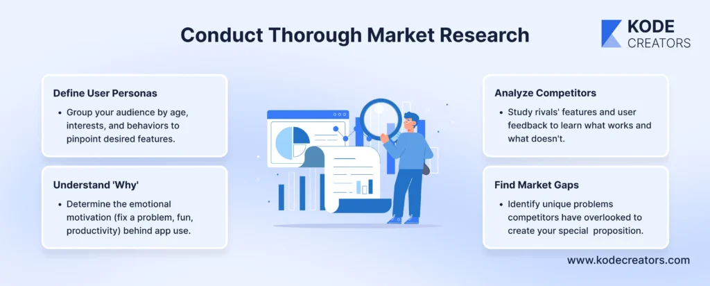Before you start coding or designing screens, you need to know what's going on in the market where your app will compete. Market research isn't just about collecting data—it's about finding insights that can guide your app's direction, improve its features, and set it up for success.