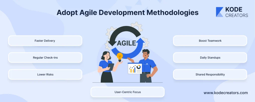 - Regular Check-ins: Agile gives you room to use feedback and shift gears when needs change, without having to redo the whole project.
