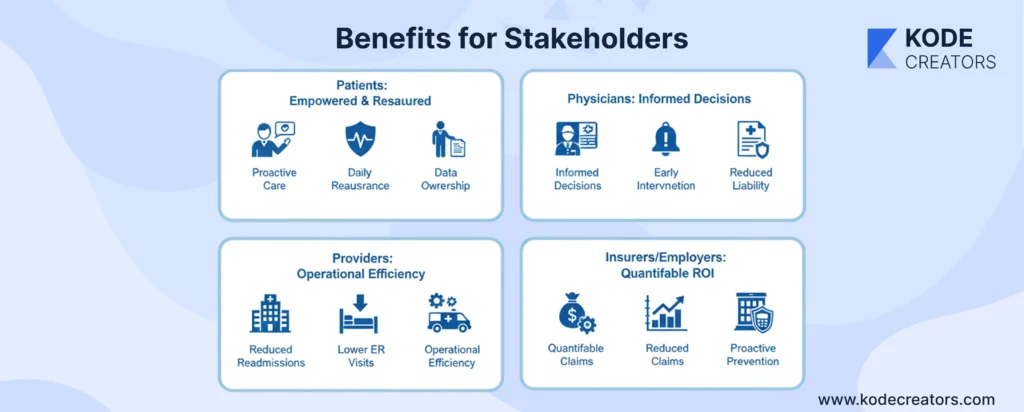 Healthcare Providers see measurable improvements in metrics that matter. Readmission rates drop when post-discharge monitoring catches complications early. Emergency visits decrease as problems get identified at home. Operational costs fall while patient satisfaction scores rise – the combination executives dream about.